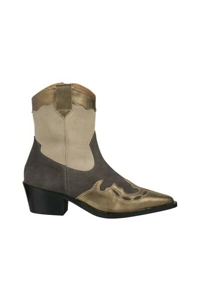 Stevige laarzen met een western look in zandkleur met bruin voor dames zijn aan de buitenkant van suède en aan de binnenkant van leer.