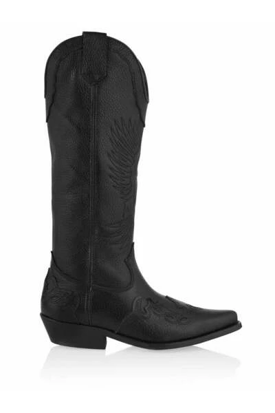Zwarte cowboy laarzen Deze zwarte cowboy-boots voor dames zijn aan de binnen en buitenzijde van leer. Helemaal stoer met mooie details in het leer. Draag deze laarzen met een jeans voor een stoere look of onder een rokje/jurk voor fashionable uiterlijk. De maat valt normaal en de hakhoogte is 4.5 cm en is gemeten vanaf de hiel. De zool hoogte is 1 cm