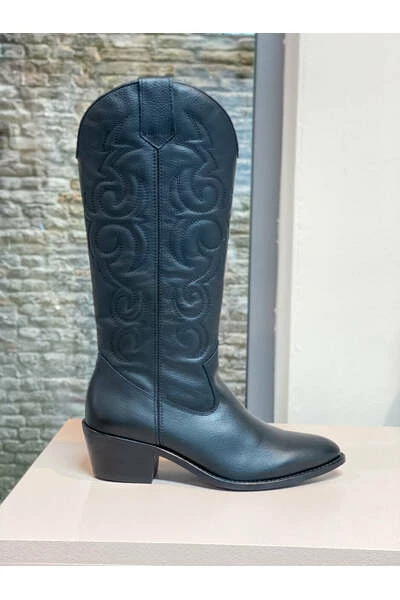 Zwarte cowboy laarzen Een trend wat je dit seizoen zeker niet kunt overslaan: De western laarzen. Het is een echte toevoeging aan je (zomer)outfit. Deze zwarte cowboy-boots zijn aan de buitenzijde van suède en aan de binnenzijde van leer. De maat valt normaal en de hakhoogte is 6.5 cm en is gemeten vanaf de hiel.