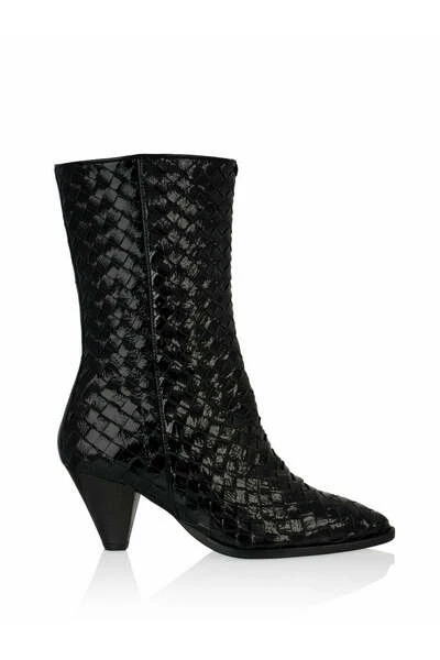 Zwarte laarzen Deze zwarte boots voor dames zijn aan de buitenzijde en binnenzijde van leer. De boots hebben een prachtig gevlochten detail. Deze stijlvolle laars is een echte toevoeging aan je outfit! De laarzen vallen iets groter uit. De hakhoogte is 6 cm en is gemeten vanaf de hiel. De plateauhoogte is 1 cm.