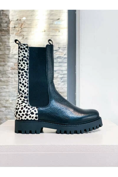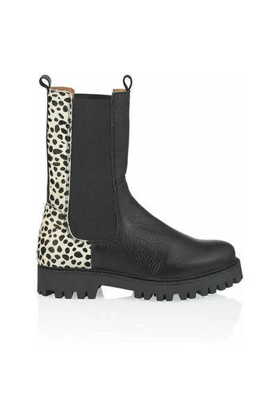 Chelsea enkellaarsjes Deze Chelsea enkellaarsjes in zwart leer met cheeta print, voor dames zijn aan de buitenzijde en binnenzijde volledig van leer. Helemaal hot met de grove zool! Deze laarsjes hebben een leuk cheeta printjes op de achterkant van pony haar. MAATADVIES De maat valt ruim en de hakhoogte is 2.5 cm, gemeten vanaf de hiel. De zool hoogte is 2 cm. Tel je over de maat? Wij adviseren bij de Bochum een maatje kleiner bij tel.