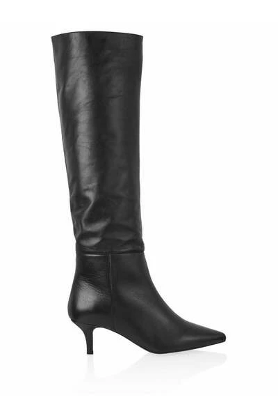 Zwarte leren laarzen Deze lange zwarte laarzen voor dames zijn aan de binnen en buitenzijde volledig van leer. De kittenheel maakt deze laars super vrouwelijk. Draag ze met een jeans voor een stoere look of onder een rokje/jurk voor fashionable uiterlijk. De laars valt tot onder de knie. MAATADVIES De maat valt normaal en de hakhoogte is 6 cm en is gemeten vanaf de hiel. De zool hoogte is 1 cm. De maat valt normaal.