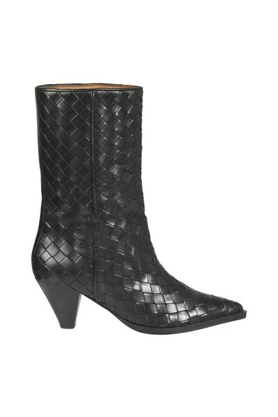 DWRS Enkellaarsjes SAMARA – Westernboots – Gevlochten Leer Black