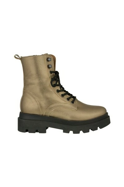Goude Metallic Bikerboots Hot! Bikerboots zijn zeker weer een must -have! Deze bikerboot met hoge zool is aan de buitenkant en aan de binnenkant van leer. Draag onder een jurkje, rok, jeans, alles kan!