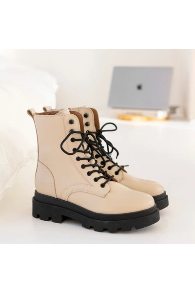 Beige leren bikerboots HOT! Bikerboots zijn zeker nog een musthave! Deze biker laars met hoge zool is aan de buitenzijde en aan de binnenzijde leer. Draag onder een jurkje, rokje, jeans, alles kan! MAATADVIES De maat valt normaal en de zool hoogte is 3 cm. De Krakau heeft een lichtgewicht zool en lopen dus als wolkjes!
