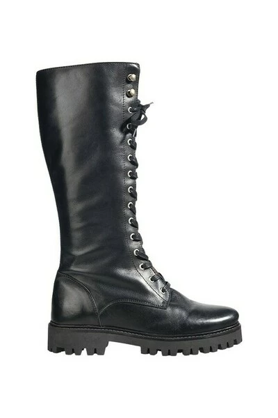 Liverpool bikerboots zwart Zo HOT! Een hoge bikerboot tot onder de knie. Heel graaf onder een rokje of jurk voor eens stoere vrouwelijke look. Deze biker laars is aan buitenzijde en aan de binnenzijde van leer. MAATADVIES De maat valt normaal en de zool hoogte is 2 cm.