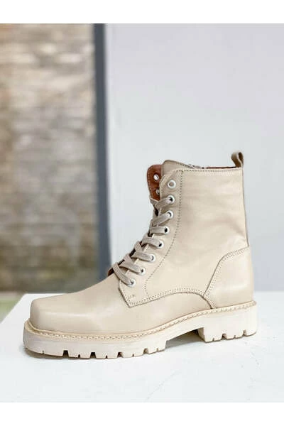 Beige leren bikerboots Seattle Een must have basic biker voor elke gelegenheid. Deze biker laars is aan buitenzijde en aan de binnenzijde leer. De maat valt normaal en de zool hoogte is 2 cm.
